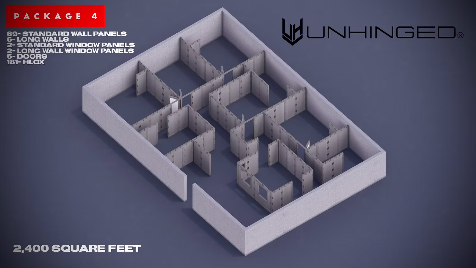 A large-format modular configuration designed for expansive training environments. Supports up to 6 rooms and approximately 1,000-1,500 square feet. This package offers increased scale and layout control, making it well suited for facilities looking to maximize usable training space while retaining the ability to reconfigure between repetitions.